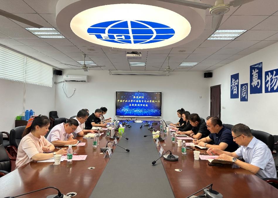 9月11日,中国矿业大学外国语言文化学院党委书记张向东等一行五人来永利集团官网调研交流。永利集团官网院长范祥涛、党委书记左彤云、副院长姜礼福、系部主任和教学办相关人员出席座谈会。